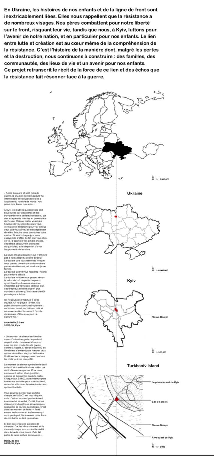 Cette exposition démontre la résistance ukrainienne face à l’invasion russe à travers de nombreux visages. Le visage des pères luttant pour notre liberté sur le front, et, reculés dans les villes, les enfants luttant pour l’avenir de notre nation. À travers le lien international, malgré les pertes et la destruction, nous continuons à soutenir : les familles, les communautés, et développer des lieux et moments de vie et un avenir pour tous.